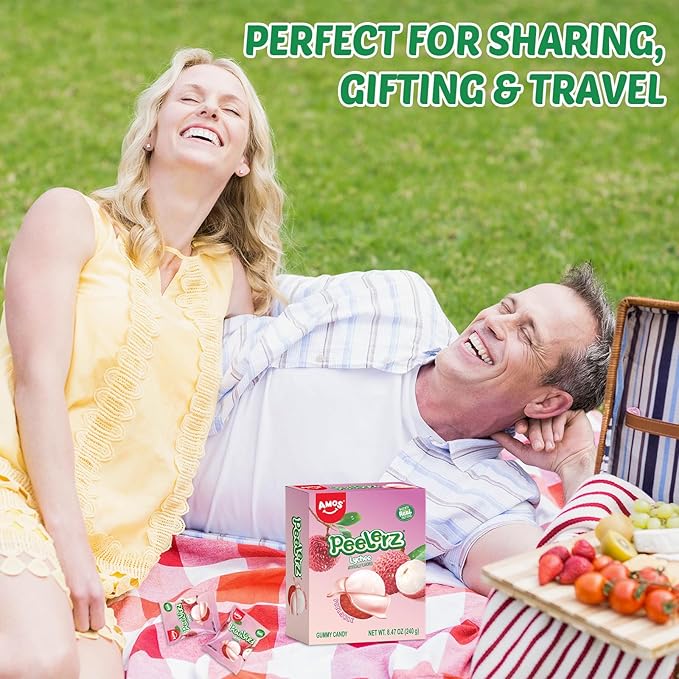 - A Fun Peel-Back Twist — AMOS Peelerz Lychee gummies offer a playful experience—lightly peel to enjoy the chewy center.