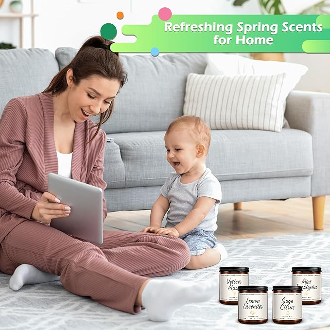 Scented Candles Set | Scented Candle for Home - 4 Pack Candle Gifts, Soy Candles for Home - Aromatherapy Gift of Mint Eucalyptus/Lemon Lavender/Sage Citrus/Vetiver Musk