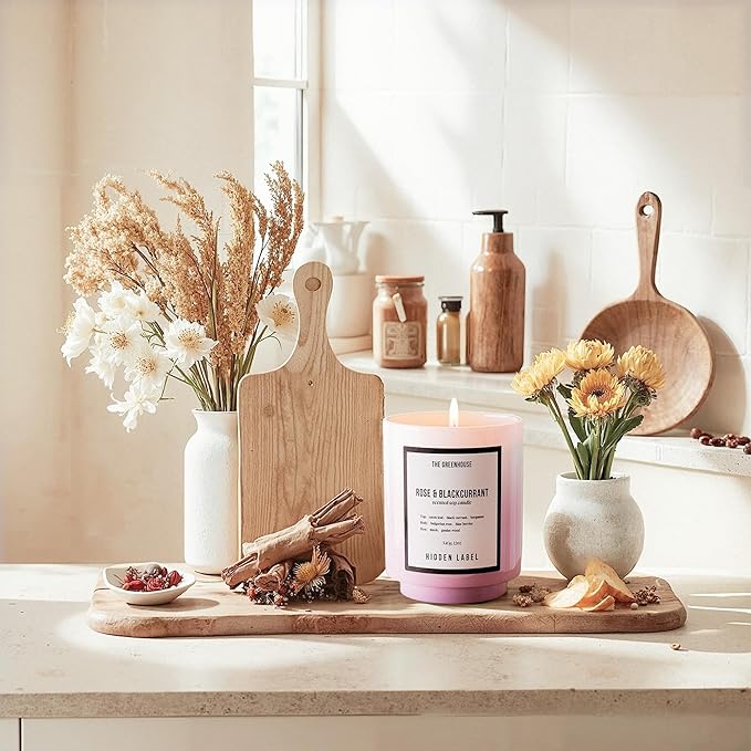 Hidden Label Rose & Blackcurrant Soy Candles, 12oz/75-Hour Burn Time, 100% Natural Soy Wax, Aromatherapy Candle for Stress Relief, Meditation, Yoga & Relaxation
