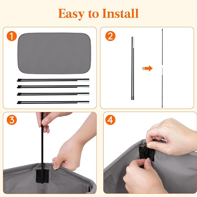 - Easy assembly: Just slide the rods into slots for quick setup. The metal frame, thick PE panels and 4 reinforced rods keep it standing sturdy even when fully loaded with laundry