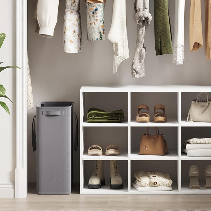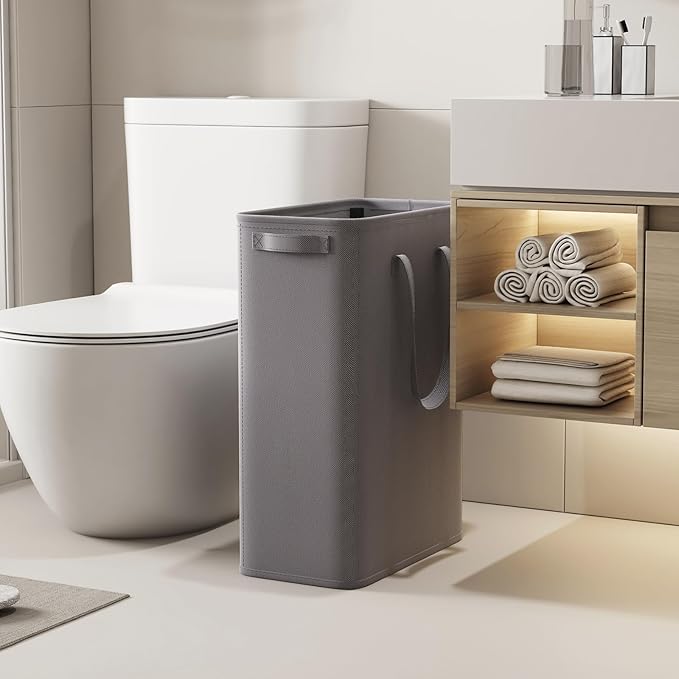 - Thin Design: Measures 16.1"x8.7"x21.7" (41x22x55 cm), this skinny hamper fits tight spaces effortlessly. Ideal between washer and dryer or in small cabinets. Sided handles make moving easy, saving space in your laundry area