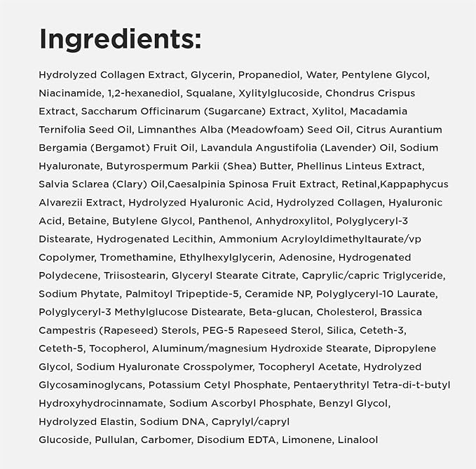 - BOOSTS COLLAGEN & REDUCES WRINKLES: This anti-aging serum uses 300 daltons of low-molecular collagen for deep penetration, improving skin firmness and reducing fine lines and wrinkles. Retinal aids in cell regeneration, promoting smoother, more youthful-looking skin.