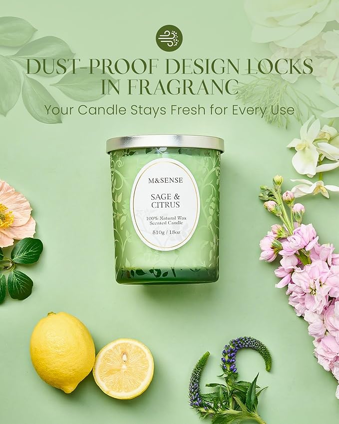 - 8% Givaudan Fragrance Balanced Brightness: 8% Givaudan natural essence (tangy citrus first, earthy sage after) fits brunch spots/home offices. Keeps focus without jitters—this scented candle hits the sweet spot for daily energy