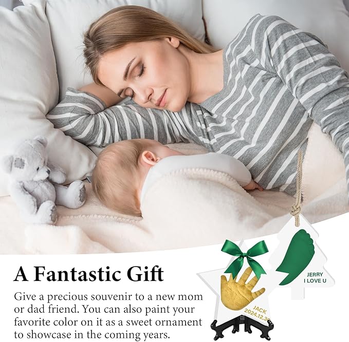 Baby Hand & Footprint Keepsake Kit - Personalized Handprint Footprint Ornament for Newborn Babies, New Mom Gifts, Baby Shower & Registry, Nursery Picture Frame, Pet Paw Print Ornament