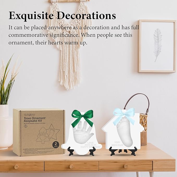 Baby Hand & Footprint Keepsake Kit - Personalized Handprint Footprint Ornament for Newborn Babies, New Mom Gifts, Baby Shower & Registry, Nursery Picture Frame, Pet Paw Print Ornament