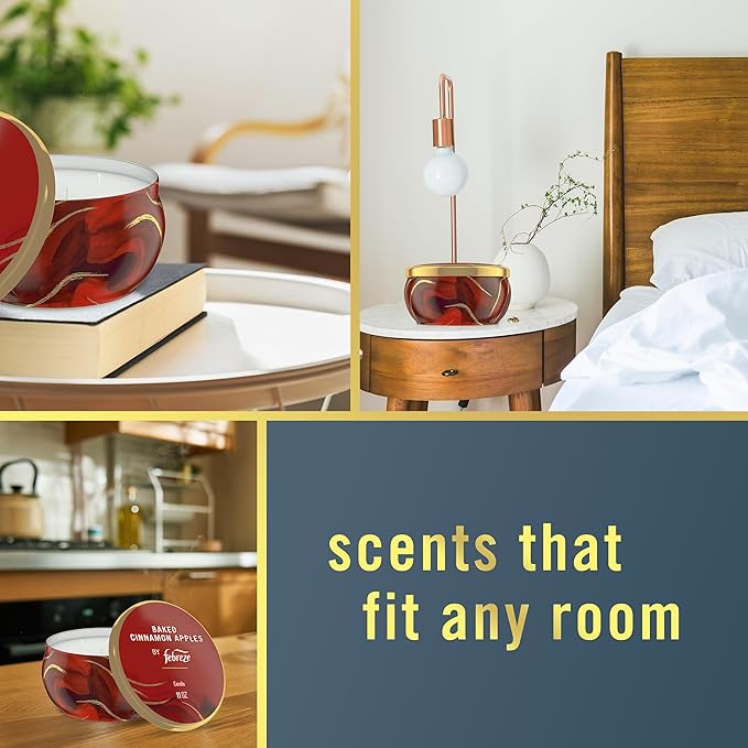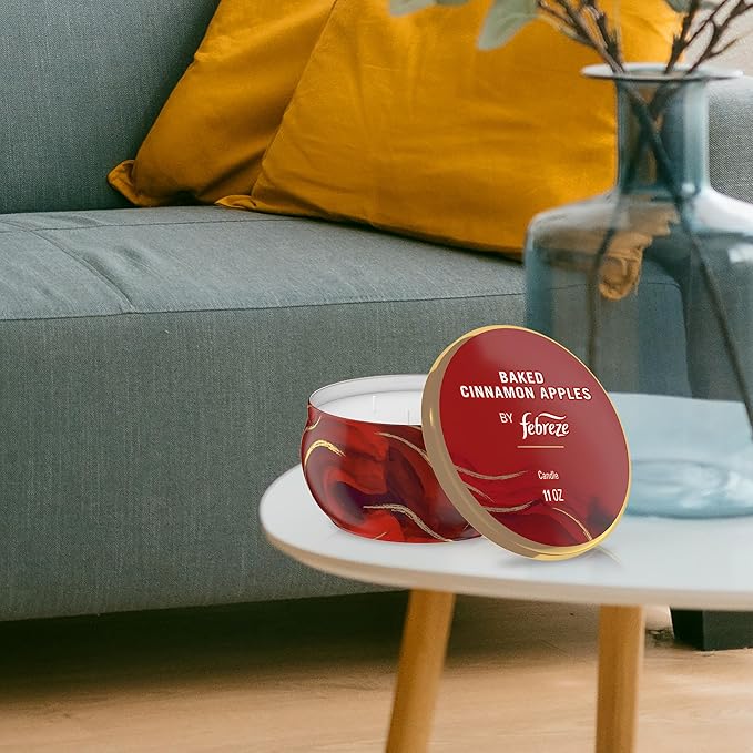 Febreze Scented Candle, Baked Cinnamon Apples Scent, 11 oz 4 Wick Candle, Single Pack