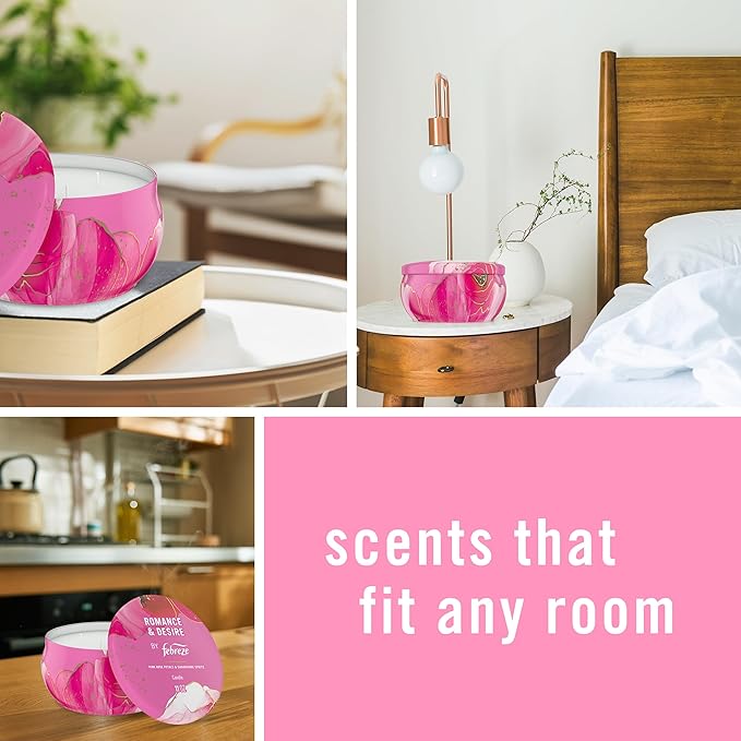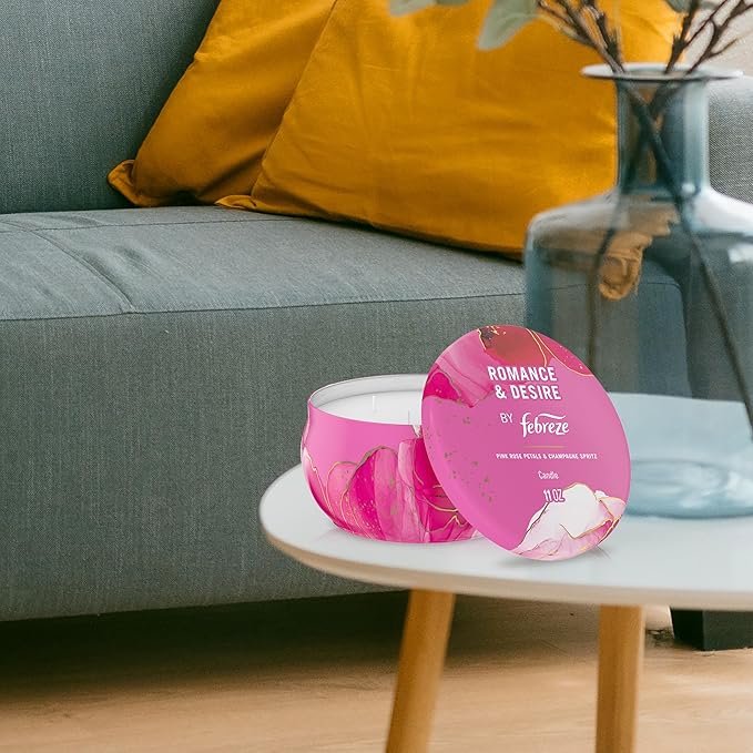 Febreze Scented Candle, Romance & Desire Scent, 11 oz 4 Wick Candle, Single Pack