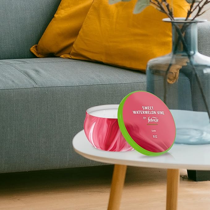 Febreze Scented Candle, Sweet Watermelon Vine Scent, 11 oz 4 Wick Candle, Single Pack