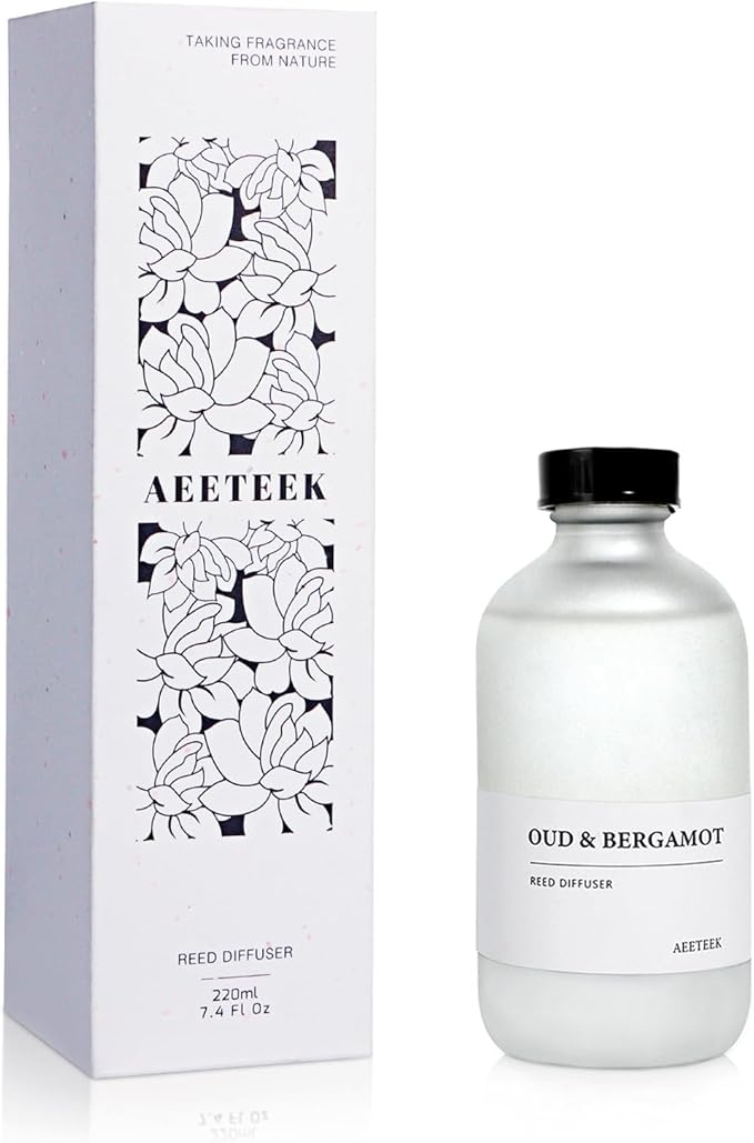 Oud Bergamot Reed Diffuser, 7.4oz(220ml) Orange & Cedar Wood Essential Oils, Air Freshener for Bathroom with Willow Branches Decor, Long Lasting Fragrance for Home, Office (1-Pack)