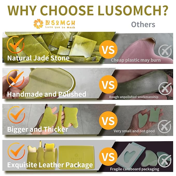 - Lab-Tested Nephrite Jade (Mohs 7.5 Hardness) + Hand-crafted Gua Sha Set + 0.08mm Mirror Polish, hypoallergenic jade tools for Skin Safety