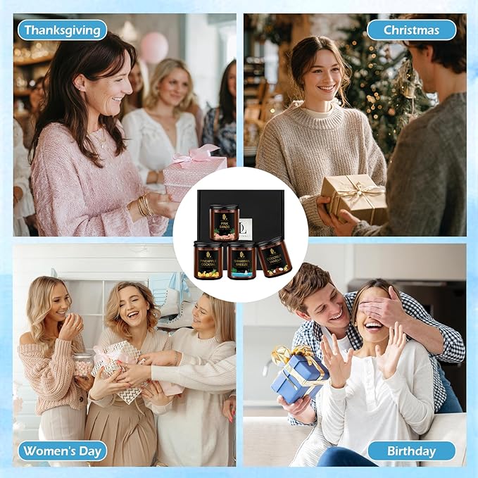 - Perfect Gift Set: Exquisite gift box packaging, containing four scented candles with different fragrances, suitable as birthday, holiday, anniversary gifts, for family, friends or lovers. Whether for personal use or as a gift, it can convey warmth and care.