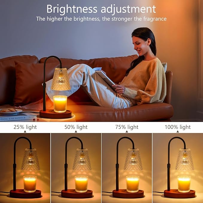- 【Customizable Brightness for Any Mood】 This Candle Warmer Lamp features 4 adjustable brightness levels—25%, 50%, 75%, and 100%—to help you create the perfect lighting for any situation. Whether you're setting the mood for a cozy evening, focusing on a project, or simply relaxing with soothing candlelight, the dimmable feature ensures flexibility and comfort. The smooth adjustment mechanism guarantees a seamless experience, making it ideal for use in living rooms, bedrooms, or even as a decorative piece in your workspace. Combine style and practicality with this elegant lamp designed to enhance any space.
