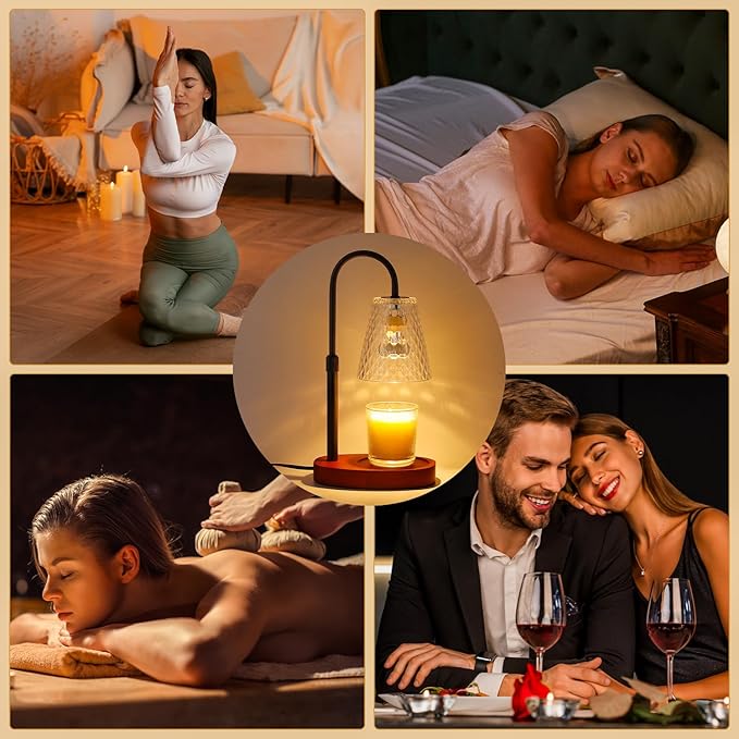 - 【Modern Rustic Design with Industrial Elements】 This Candle Warmer Lamp features a timeless blend of rustic and industrial aesthetics, complemented by a sturdy wood base and sleek metal accents. Its warm light and minimalist design make it a perfect fit for farmhouse, contemporary, or bohemian-inspired decor. The adjustable height and touch dimmer provide added functionality, making it a practical yet stylish addition to bedrooms, kitchens, and even office spaces. With a compact footprint, it’s ideal for small areas, such as bedside tables or dorm rooms, while still delivering maximum fragrance and ambiance. Elevate your home’s style with this unique blend of modern and rustic charm.