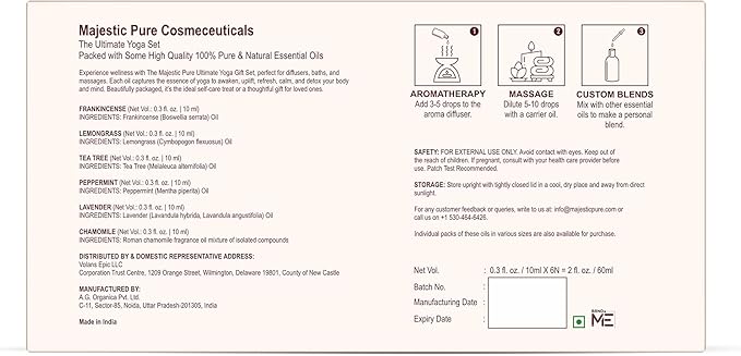Majestic Pure, Yoga Essential Oil Gift Set | 100% Pure & Natural Set for Yoga, Meditation and Self-Care Rituals | Frankincense, Tea Tree, Lavender, Peppermint, Lemongrass, Chamomile - Pack of 6