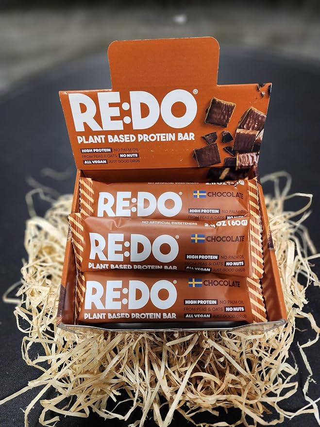 RE:DO Plant based Protein Bars I Swedish Chocolate 2.1oz bars I 12g Vegan Protein, Nutrition Protein Bars I High Protein Recovery Bars, No Palm oil I (9 count) (Large, Chocolate)