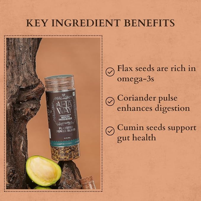 - PREMIUM QUALITY & CRUNCHY GOODNESS: Enjoy our 140g pack of AftaWay Flaxseed Power Blend, a delightful mix of roasted flaxseeds (Alsi), tangy dry mango seeds (Gotli), and nutty sesame seeds (Til). Every bite offers a satisfying crunch and rich flavor, crafted with gluten-free, non-GMO ingredients and no artificial preservatives or added sugar for a truly clean and nourishing snack.