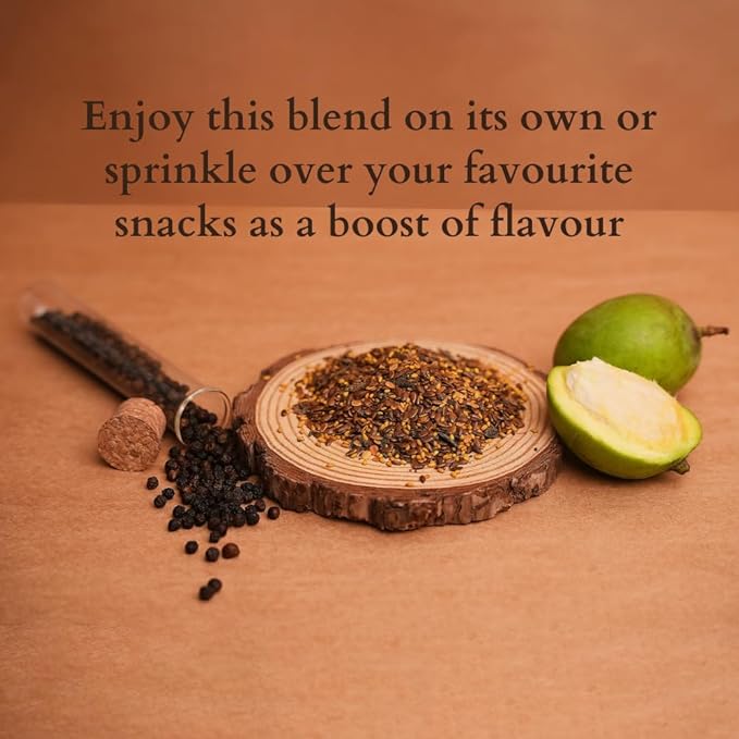 - AUTHENTIC INDIAN FLAVORS & WELLNESS: Experience the vibrant taste of India with premium roasted flaxseeds, tangy dry mango, and nutty sesame seeds. Expertly blended with warm cumin, coriander, mineral-rich rock salt, and a hint of black pepper, this deliciously spiced treat is perfect as a traditional mukhwas, a unique bagel topping, or a flavorful addition to your favorite dishes like upma, poha, or veggie burgers.