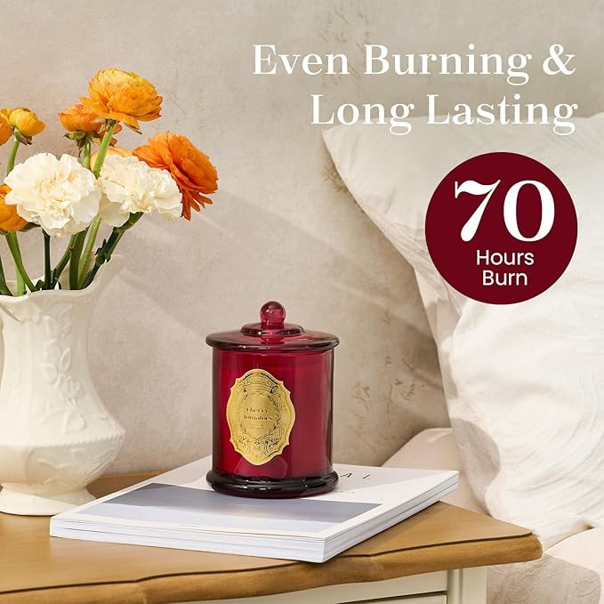 - 【70 Hours of Fragrant Bliss】Infused with premium oils, our non-toxic candles (12.7 oz) offer a rich, strong aroma journey. Featuring a lead-free HTP cotton wick, this 2 wick candle ensures a smokeless, scented burn for 70 hours—perfect for home, holiday gatherings, or aromatherapy candle relaxation.
