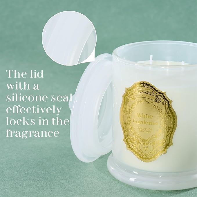 M&SENSE White Gardenia Candles for Home Scented, 2 Wick 12.7oz Soy Wax Candles Non Toxic,70 Hours Long Burning,Luxury Candles Gift for Stress Relief, Meditation, Yoga