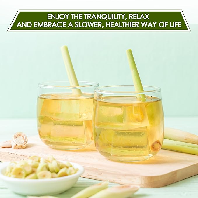 - [Enjoy Hot or Cold]: Lemongrass tea has a mild, refreshing flavor and aroma, perfect for enjoying either hot or cold based on your preference. It can be enjoyed on its own or paired with other ingredients like mint, honey, ginger, orange, lemon, kumquat, or peach to enhance its taste.