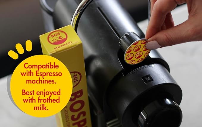 - CAPSULE CONVENIENCE – MACHINE COMPATIBLE: Designed for capsule espresso machines that accept standard-format capsules, these rooibos tea capsules deliver quick and easy brewing without mess or fuss. Not compatible with Keurig or K-Cup brewers. BOSpresso makes rooibos espresso simple—pop in a capsule, press start, and enjoy rooibos tea that’s organic, caffeine-free, and ready in seconds. Experience rooibos espresso, cappuccinos, or lattes from your favorite pod machine.