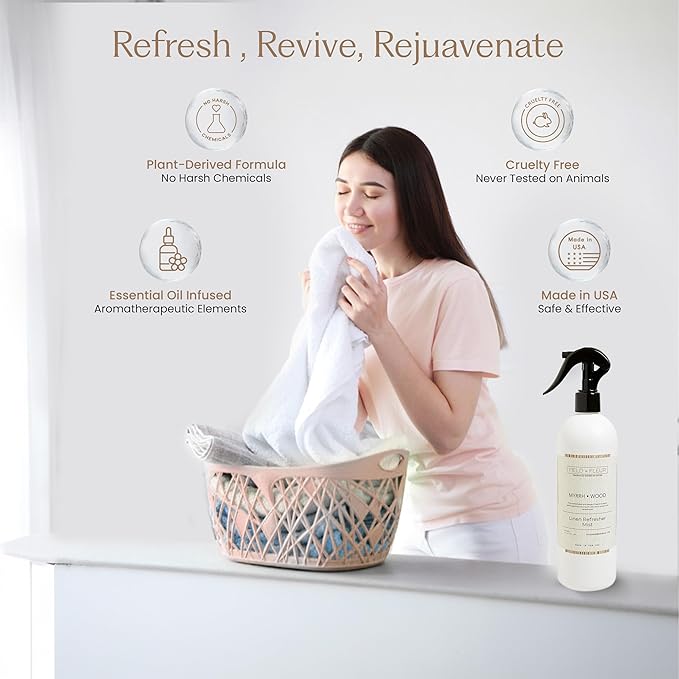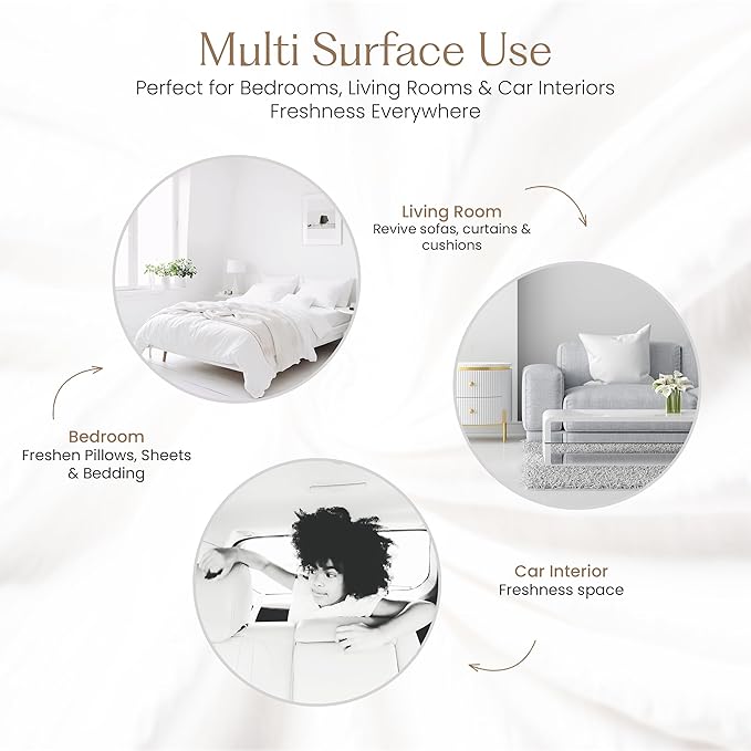 - Generous 15.5 oz Size: Our large 15.5 oz fine mist bottle evenly covers fabrics and rooms. Perfect for daily linen care, pre-ironing touchups, and post-laundry finishing, providing long-lasting freshness with more sprays per bottle.
