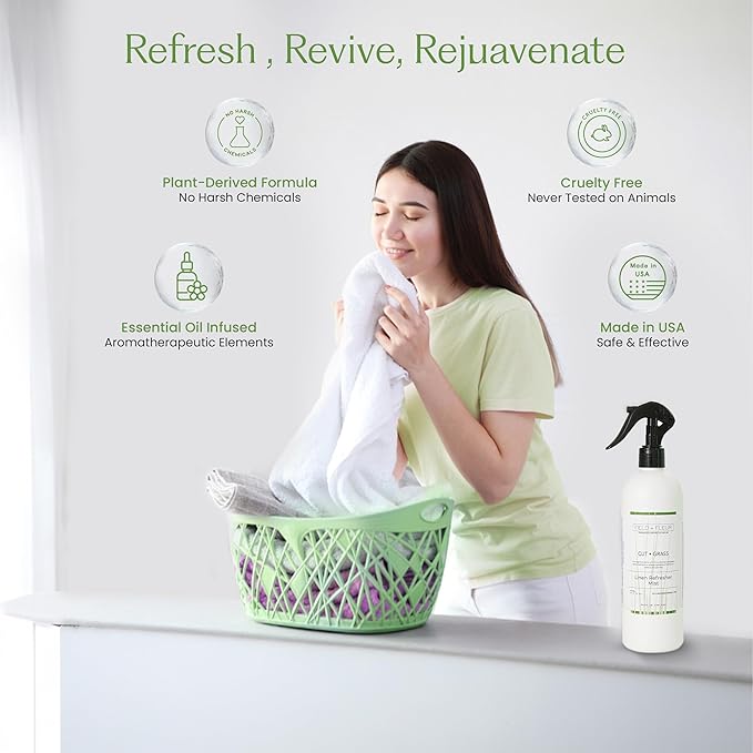 - Generous 15.5 oz Size: Our large 15.5 oz fine mist bottle evenly covers fabrics and rooms. Perfect for daily linen care, pre-ironing touchups, and post-laundry finishing, providing long-lasting freshness with more sprays per bottle.