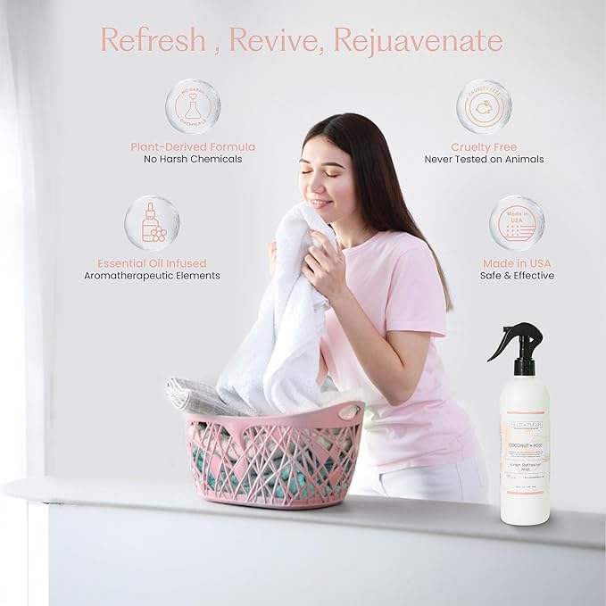 - Generous 15.5 oz Size: Our large 15.5 oz fine mist bottle evenly covers fabrics and rooms. Perfect for daily linen care, pre-ironing touchups, and post-laundry finishing, providing long-lasting freshness with more sprays per bottle.