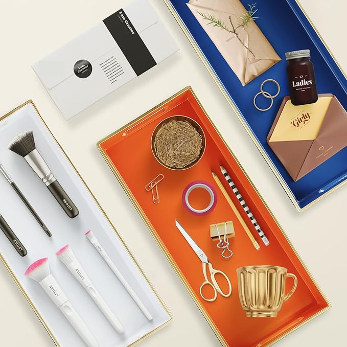 - Versatile & Practical Design: This 13.7" x 6" x 1.4" rectangular vanity tray is perfect for organizing small items in your bathroom, desk, kitchen, or entryway, keeping your space neat and clutter-free. Ideal for perfumes, toiletries, jewelry, and office supplies.