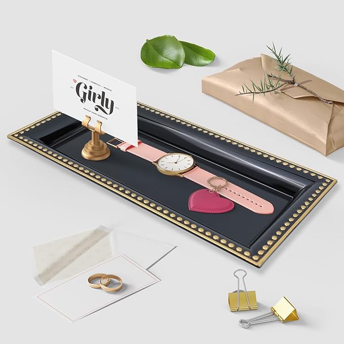 - Versatile & Practical Design: This 14" x 7" x 1" rectangular vanity tray is perfect for organizing small items in your bathroom, desk, kitchen, or entryway, keeping your space neat and clutter-free. Ideal for perfumes, toiletries, jewelry, and office supplies.