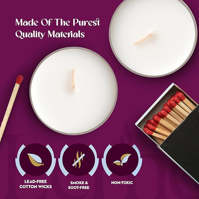 - SMOKELESS & SOOT-FREE |THE BEST CHOICE FOR INDOOR USE: These long-lasting tea lights provide hours of clean and consistent burn without any smoke, soot, drips or residue. Light them up in your kitchen, dining room, or even the smallest bedroom without worrying about smoke scents or heavy fragrances.