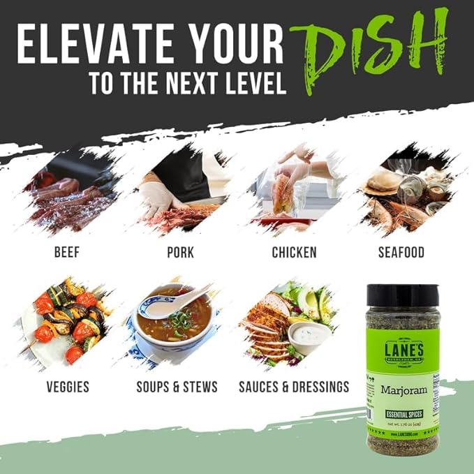 - VERSATILE HERB FOR BBQ, ROASTS, & SOUPS. Whether you’re grilling pork or seasoning a homemade minestrone, Lane’s Marjoram is ideal for BBQ, soups, and marinades, best added at the end of cooking to preserve flavor.