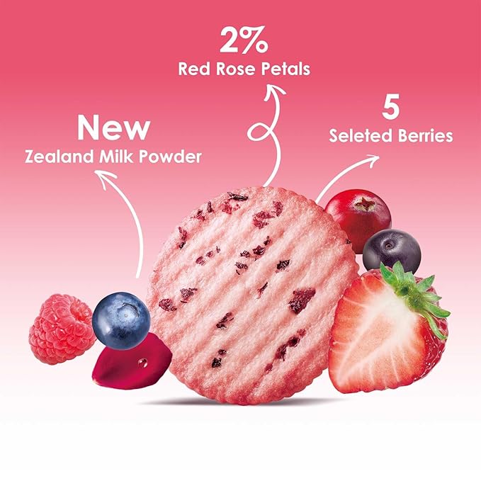 - ๐ฅ๐ผ๐๐ฒ ๐ฃ๐ฒ๐๐ฎ๐น๐ & ๐ฑ ๐ฆ๐ฒ๐น๐ฒ๐ฐ๐๐ฒ๐ฑ ๐๐ฒ๐ฟ๐ฟ๐ถ๐ฒ๐-Made with 2% rose petals and a blend of five carefully selected dried berriesโraspberry, strawberry, acai berry, blueberry, and cranberryโthese cookies are infused with real fruit powders and natural flavors. Each bite delivers a crispy crunch and delicious flavor.