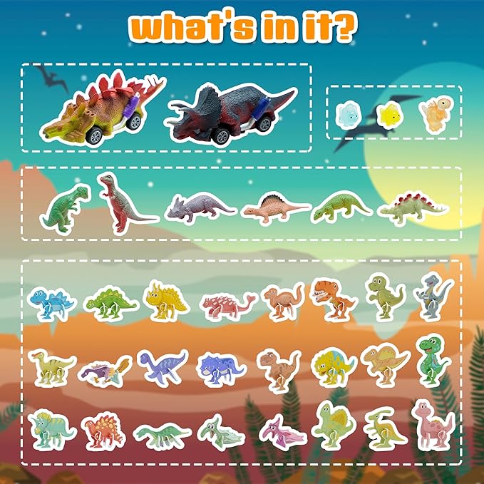 - Extra 24pcs Dinosaur Puzzles and 2pcs Car: kids bath bombs gifts set include 20 dinosaur bath bombs with different dinosaur inside,24pcs 3D Dinosaur Puzzles and 2 artfully-crafted roadster dinosaur pull back toy cars.Make bath time both entertaining and educational with these enchanting light up toys.The dinosaur toys for kids set make a great birthday gift or a special toy to give to any child who loves dinosaurs.