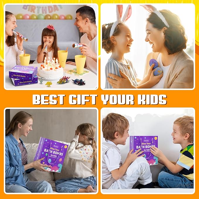 - Perfect Gift For Kids: Beautifully packaged and dinosaur egg bath bomb gift with built-in surprise toys. Perfect bubble bath gift set for Birthday, Christmas, Easter basket stuffers, Valentines' Day, party favor or Spa/Bath gifts for girls boys