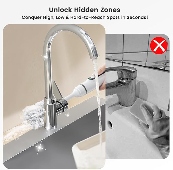 - Long-Lasting Battery: 3-hour quick charge provides 110 minutes of continuous operation. Perfect for deep-clean extensive bathrooms and long cleaning sessions without frequent recharging.