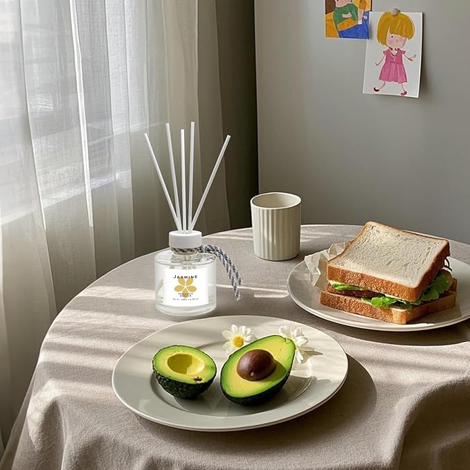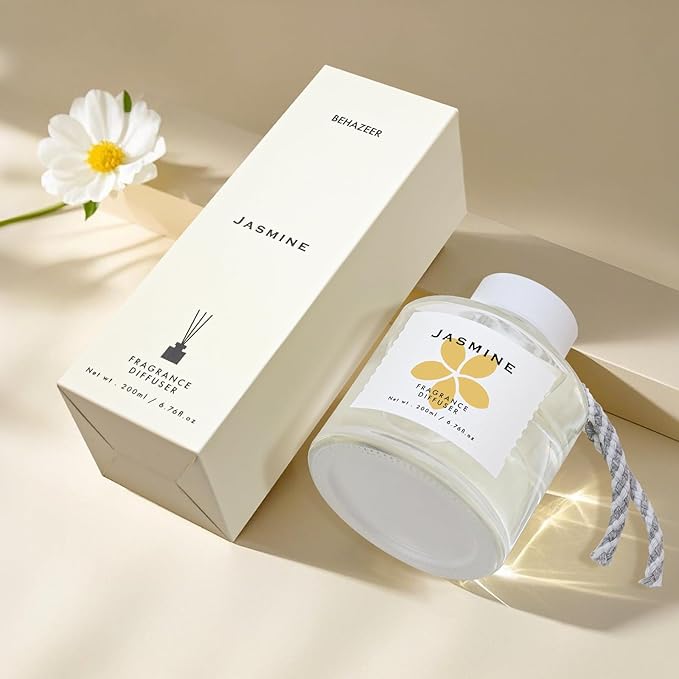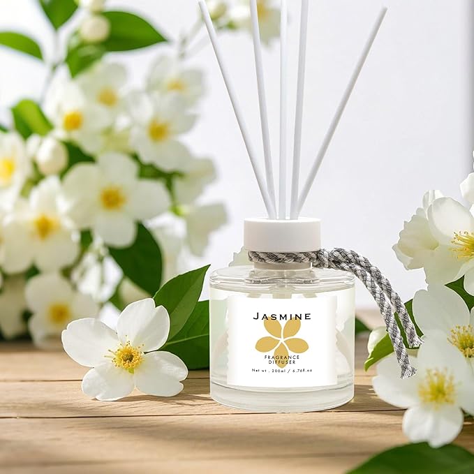 Jasmine Reed Diffuser Set, 6.77OZ(200ML) Large Capacity Natural Non-Toxic Oil, Reed Diffusers Set for Home