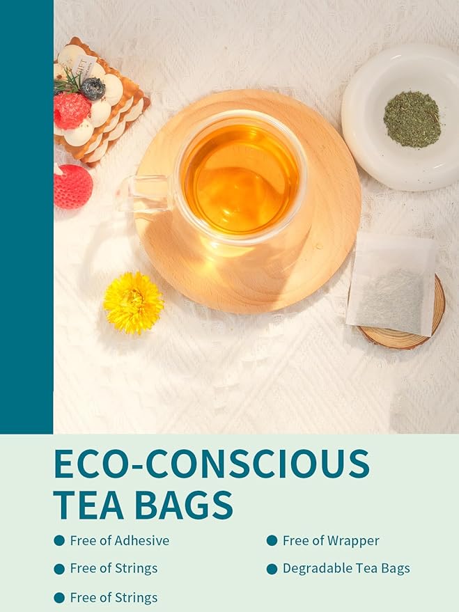 - [100 COUNT ECO-CONSCIOUS TEA BAGS] - Our premium tea bags are made from non-GMO plant fiber, and tea bags are unbleached and compostable. No string and no tag. No extra waste - just healthy & delicious tea!