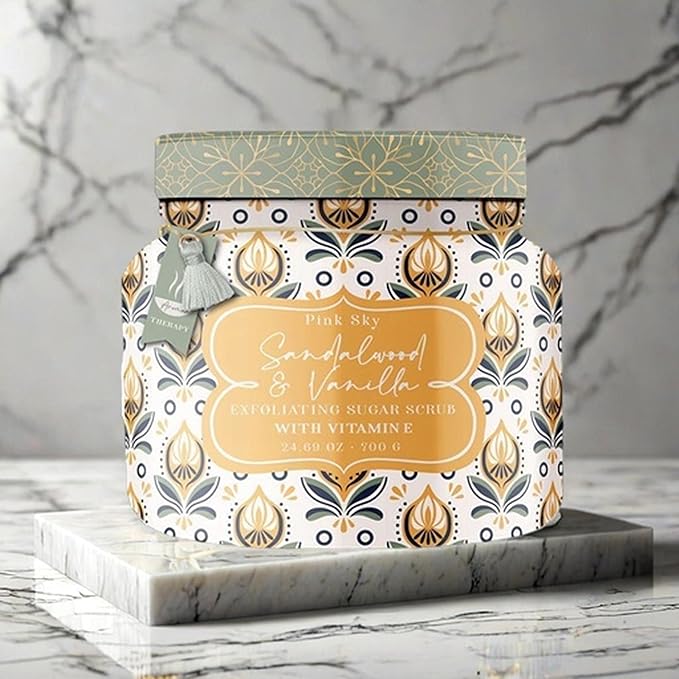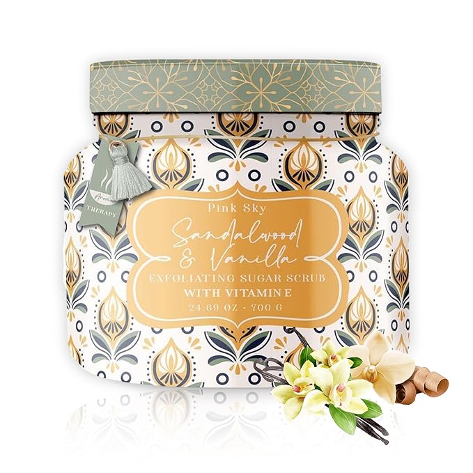 Pink Sky Exfoliating Body Scrub - Ultra Gentle Sugar Scrub for Smooth Skin - Premium Body Scrubs for Radiant, Soft Skin - Ideal Exfoliator for All Skin Types - 700g (Sandalwood & Vanilla, 24.69 Oz)