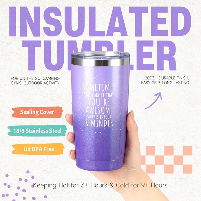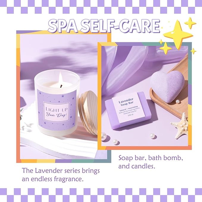 - 【THIS WILL BE A HIT】Suhctuptx makes gifting twice as fun! Inspired by warm lavender tones and a playful retro vibe, it’s designed to spread gratitude, joy, and positive energy—From the sparkling inspirational travel tumbler to relaxing spa gifts, every item is carefully selected to brighten her day. Whether you're saying “Happy Birthday,” “Thank You I Love You Mom,” “Long live friendship” or “Merry Christmas,” this vibrant and feel-better gift set is sure to stand out and make her smile.