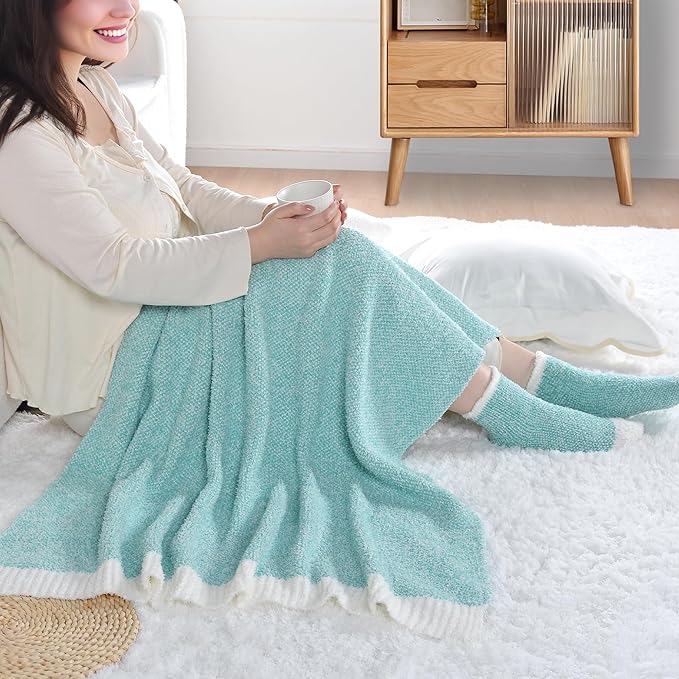 - Cozy Gift Basket for Women - Delight the special women in your life with this beautifully curated green-themed gift set. Includes a soft half throw blanket, fuzzy socks, cozy eye mask, scrunchie, headband, travel storage bag, and a heartfelt blank gift card, all elegantly packed to offer warmth and comfort.