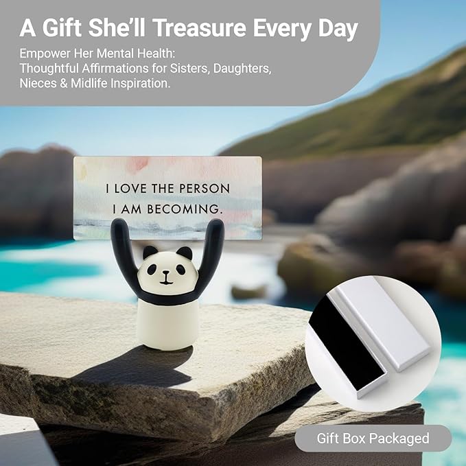 ZEARPT Affirmation Card Deck for Women, Self Care Gift, Positive Affirmation Cards with Holder, Gift for Her, Daughter, Niece, Sister, Daily Affirmations, Midlife Manifestation Gift (White - Panda)