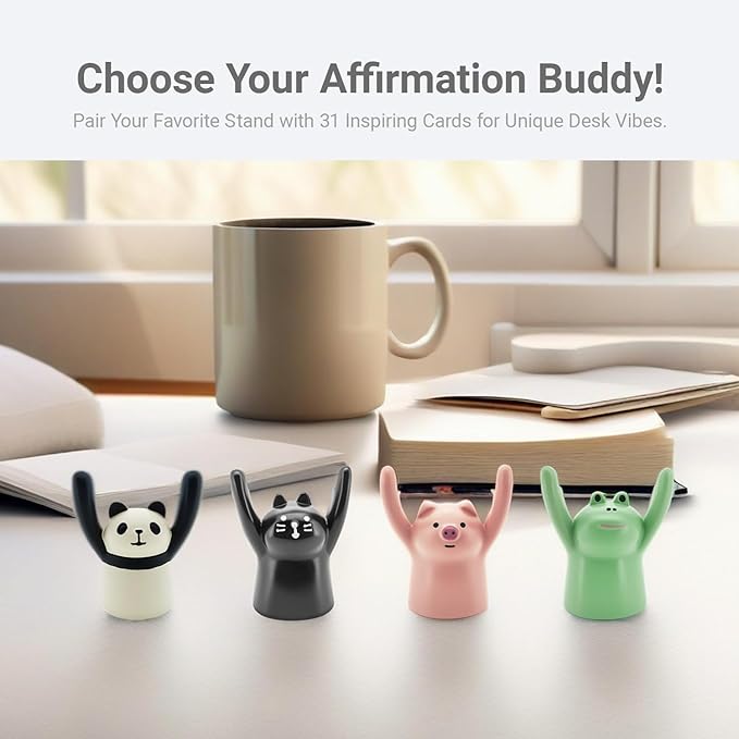 - Adorable Animal Card Holders – Choose your favorite animal stand from Panda, Frog, Cat, or Pig to hold your daily affirmation card, adding a playful and unique touch to your space.