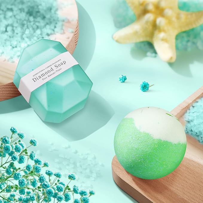 - OCEAN SPA GIFTS FOR WOMEN: Crafted with natural wax and pure essential oils, this 4oz ocean candle burns clean for 30+ hours—no smoke, just pure relaxation. Paired with fizzy bath bombs and diamond handmade soap, this set fills her bath with calming ocean bliss. Perfect as friendship gifts for women, get well soon gifts, or just-because self care gifts to melt away stress and anxiety.