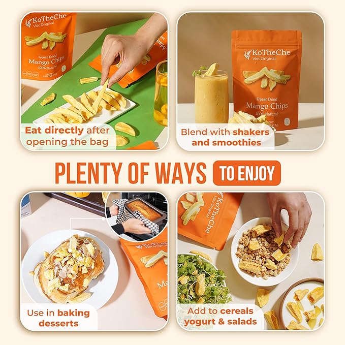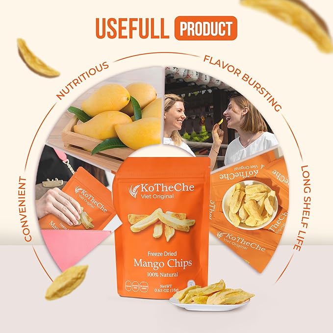- 100% REAL FRUIT – PURE FREEZE DRIED MANGO CHIPS: Enjoy natural sweetness from 100% real mango — no sugar added, no preservatives, no artificial colors or flavors. These freeze dried mango crisps are vegan, gluten free, non GMO, and made for healthy snacking on the go.