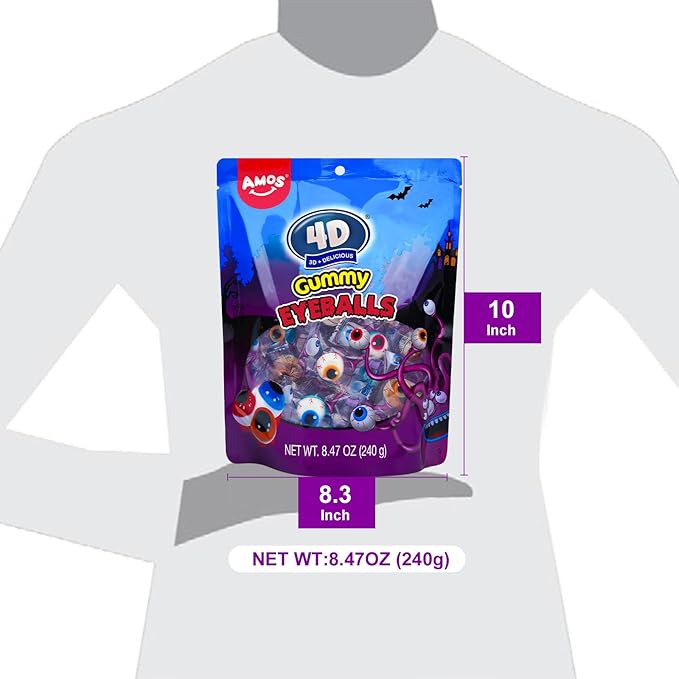 Amos Gummy Eyeball Halloween Candy Eye Candy Treats for Kids & Parties, 3D Gummy Eyeballs, Individually Wrapped,Sharing, 9oz Bag