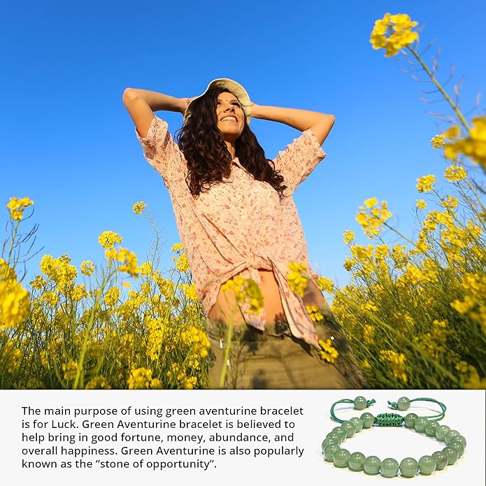 - HIGH-QUALITY NATURAL GEMSTONE BEADS: Crafted with authentic natural gemstone beads, this green aventurine bracelet ensures durability and beauty. Each bead exudes the power of stability, grounding, and healing, making it perfect for daily wear or spiritual practices. Elevate your energy with this stunning handmade adjustable bracelet.