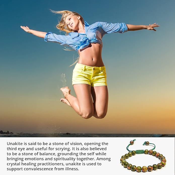 - READY TO GIFT: This adjustable healing gemstone bracelet is ready for gifting. Perfect for stocking stuffers or as a thoughtful gesture for friends and family, its elegant packaging complements its spiritual and aesthetic appeal, making the unakite beaded bracelet an ideal choice for all celebrations.
