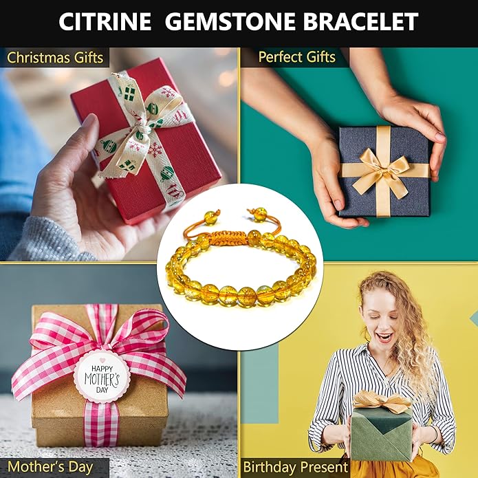 - READY TO GIFT: This adjustable healing gemstone bracelet is ready for gifting. Perfect for stocking stuffers or as a thoughtful gesture for friends and family, its elegant packaging complements its spiritual and aesthetic appeal, making the citrine beaded bracelet an ideal choice for all celebrations.