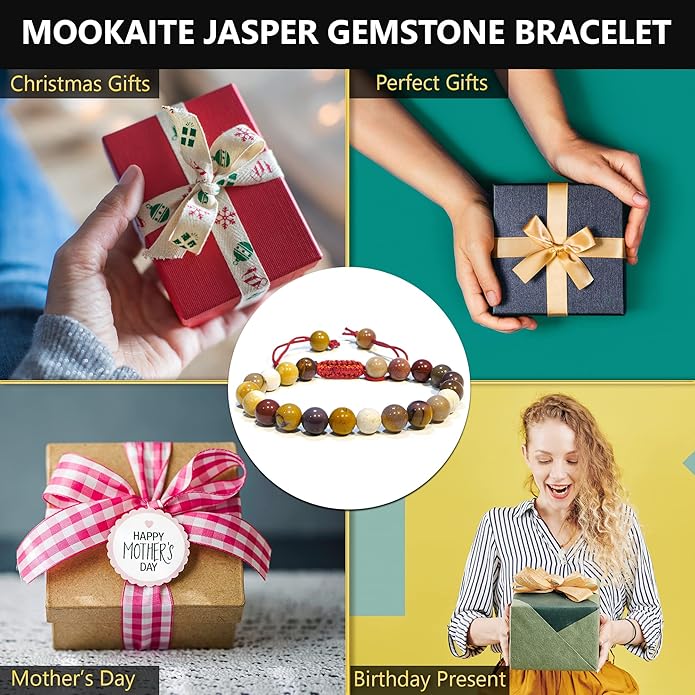 - READY TO GIFT: This adjustable healing gemstone bracelet is ready for gifting. Perfect for stocking stuffers or as a thoughtful gesture for friends and family, its elegant packaging complements its spiritual and aesthetic appeal, making the mookaite jasper beaded bracelet an ideal choice for all celebrations.